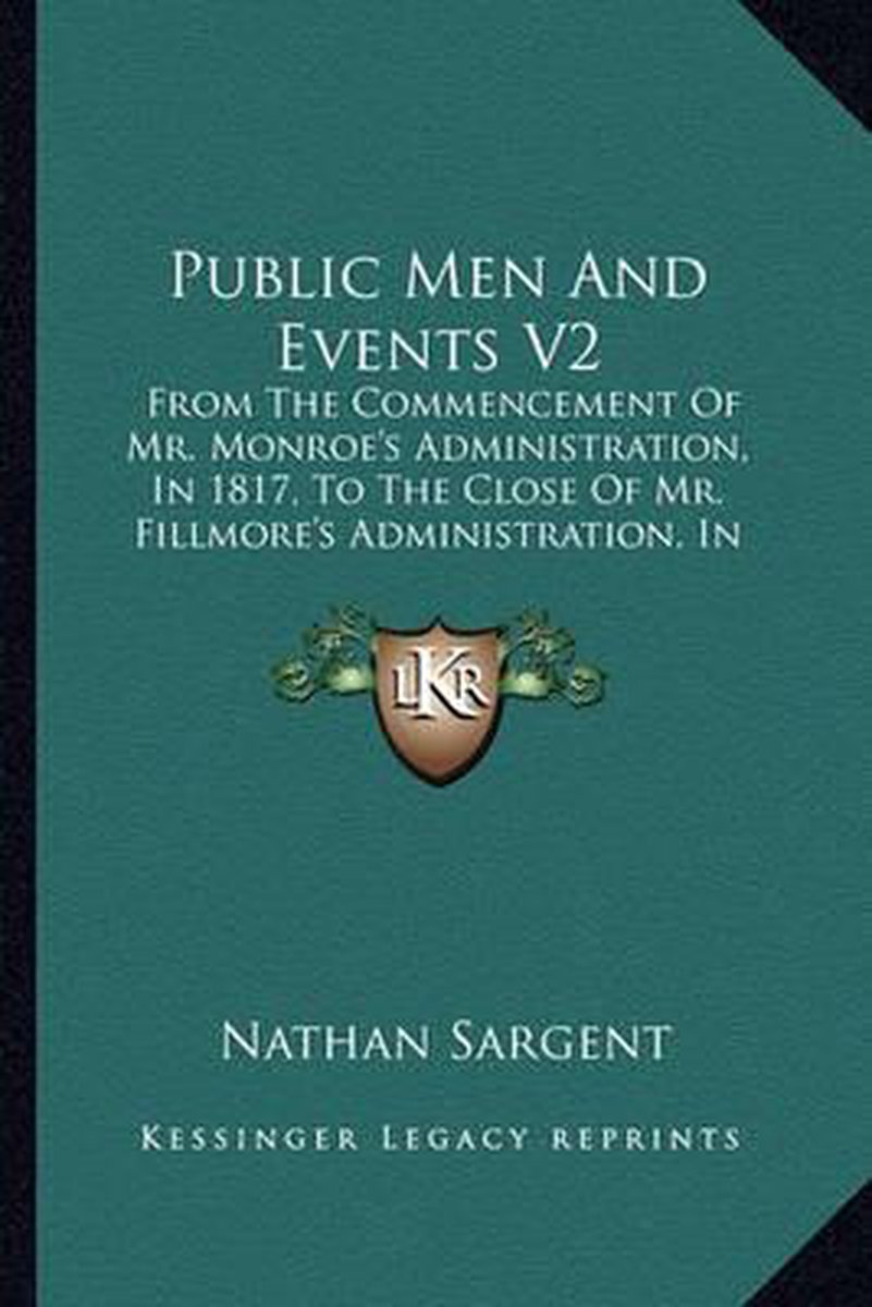 De meest gevonden boeken zijn Public Men And Events V1, Public Men And Events, Public Men And Events From The Commencement Of Mr. Monroe's Administration, In 1817, To The Close Of Mr. Fillmore's Administration, In 1853. By Nathan Sargent. Vol. 2, Public Men And Events From The Commencement Of Mr. Monroe's Administration, In 1817, To The Close Of Mr. Fillmore's Administration, In 1853. By Nathan Sargent. Vol. 1 en Public Men And Events From The Commencement Of Mr. Monroe's Administration, In 1817, To The Close.