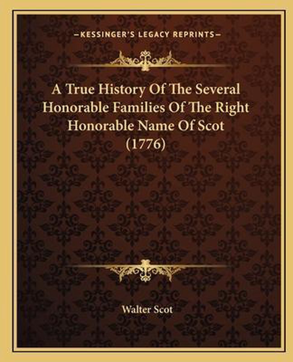 De meest gevonden boeken zijn A True History Of Several Honourable Families Of The Right Honourable Name Of Scot, Metrical History Of The Honourable Families Of The Name Of Scot And Elliot, In The Shires Of Roxborg, A True History Of The Several Honorable Families Of The Right Honorable Name Of Scot (1776), A True History Of Several Honourable Families Of The ... Name Of Scot ... Reprinted From The Rare Original Edition Of 1688, And Edited By J. G. Winning. en A True History Of Several Honourable Families Of The Right Honourable Name Of Scot, In The Shires Of Roxburgh And Selkirk, And Others Adjacent..