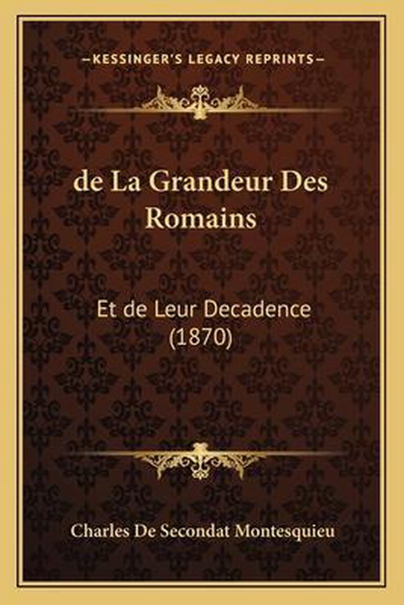 De meest gevonden boeken zijn Reflections On The Causes Of The Rise And Fall Of The Roman Empire (1825), Oeuvres Complettes De Montesquieu, Montesquieu's Considerations On The Causes Of The Grandeur And Decadence Of The Romans (1889), The Spirit Of Laws V1 en De L'esprit Des Lois (1874).