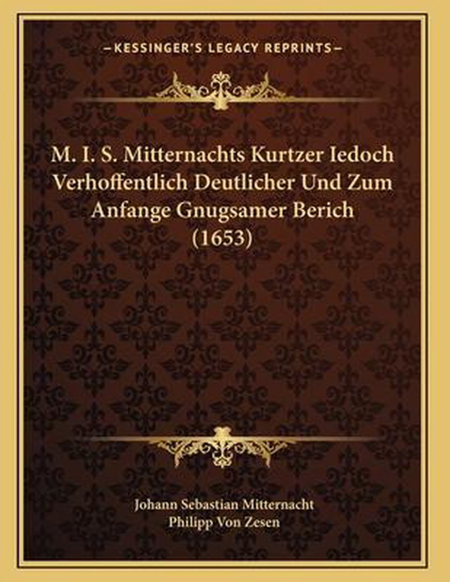 Het enige gevonden boek is M. I. S. Mitternachts Kurtzer Iedoch Verhoffentlich Deutlicher Und Zum Anfange Gnugsamer Berich (1653).