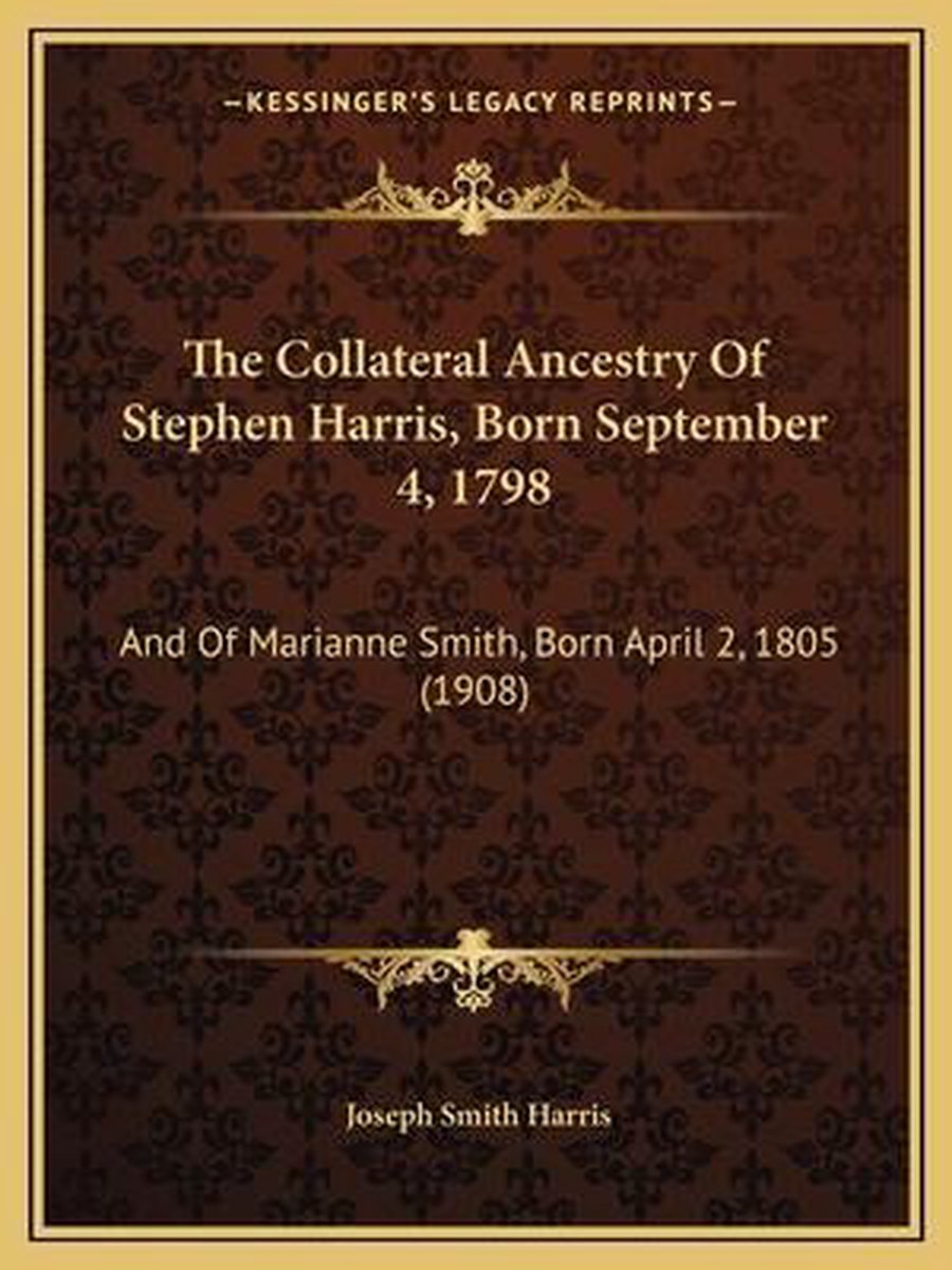 De meest gevonden boeken zijn Record Of The Smith Family Descended From John Smith, Born 1655 In County Monaghan, Ireland, The Collateral Ancestry Of Stephen Harris, Born September 4, 1798 And Of Marianne Smith, Born April 2, 1805, The Collateral Ancestry Of Stephen Harris, Born September 4, 1798 en Notes On The Ancestry Of The Children Of Joseph Smith Harris And Delia Silliman Brodhead (1898).