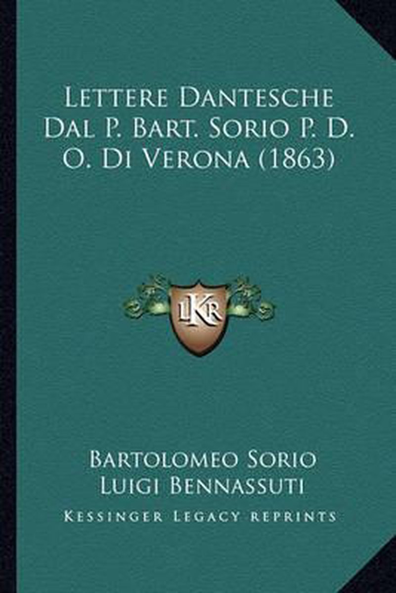 De meest gevonden boeken zijn Lettere Dantesche Dal P. Bart. Sorio P. D. O. Di Verona (1863), Lettere Dantesche E Il Farnetico Savio Ovvero Il Tasso (1895), Due Lettere en Lettere Del Beato Don Giovanni Dalle Celle Monaco Vallombrosano (1845).