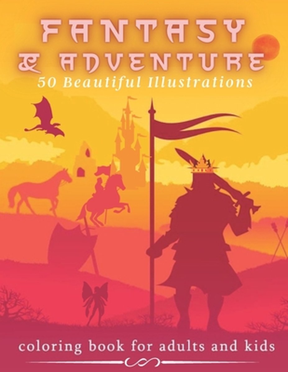 Het enige gevonden boek is Fantasy & Adventure 50 Beautiful Illustrations - Coloring Book For Adults And Kids: Mythical Fantasy - Medieval, Dragons, Mermaids, Castles And Fairie.