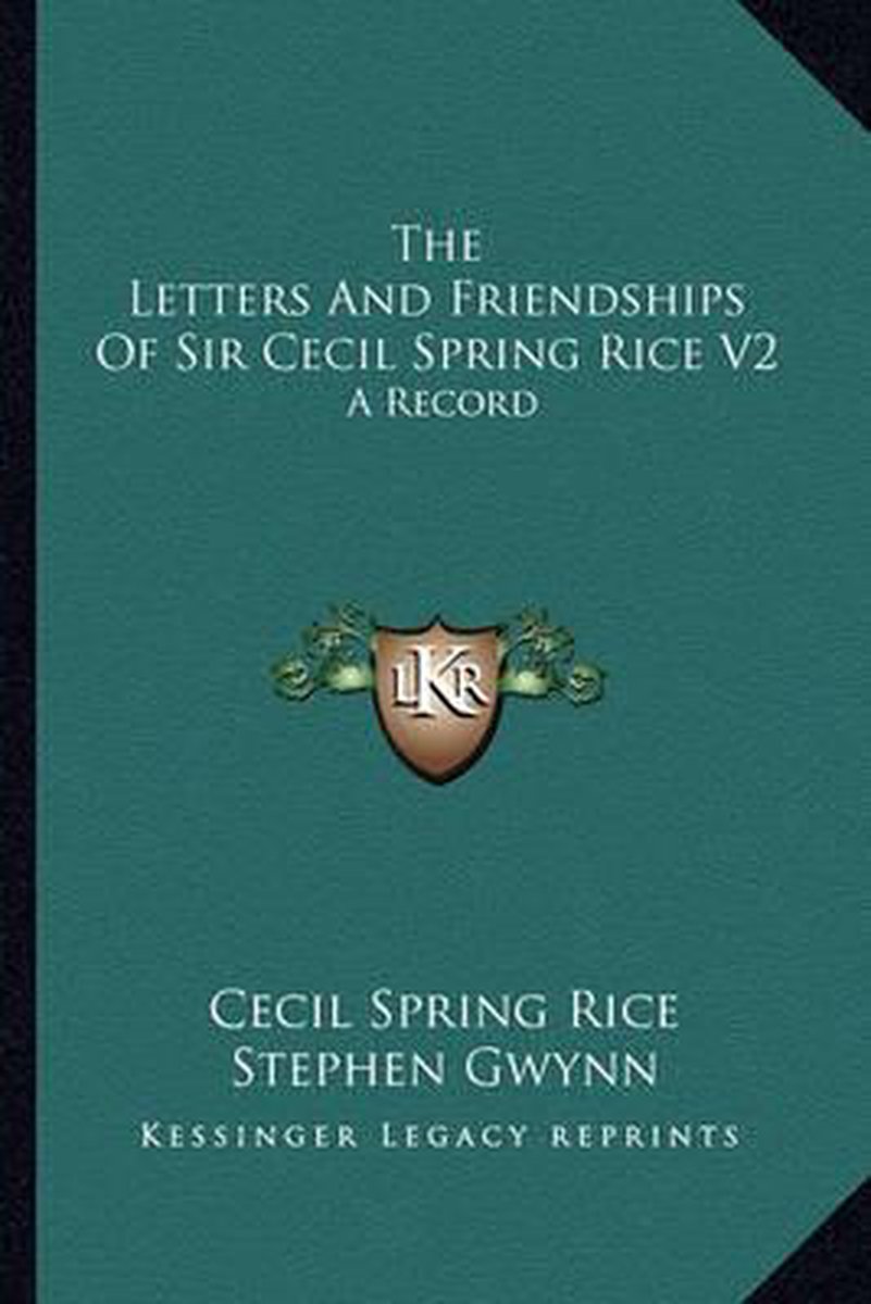 De meest gevonden boeken zijn The Letters And Friendships Of Sir Cecil Spring Rice V2, The Letters And Friendships Of Sir Cecil Spring Rice V1 en The Letters And Friendships Of Cecil Spring Rice, V1.