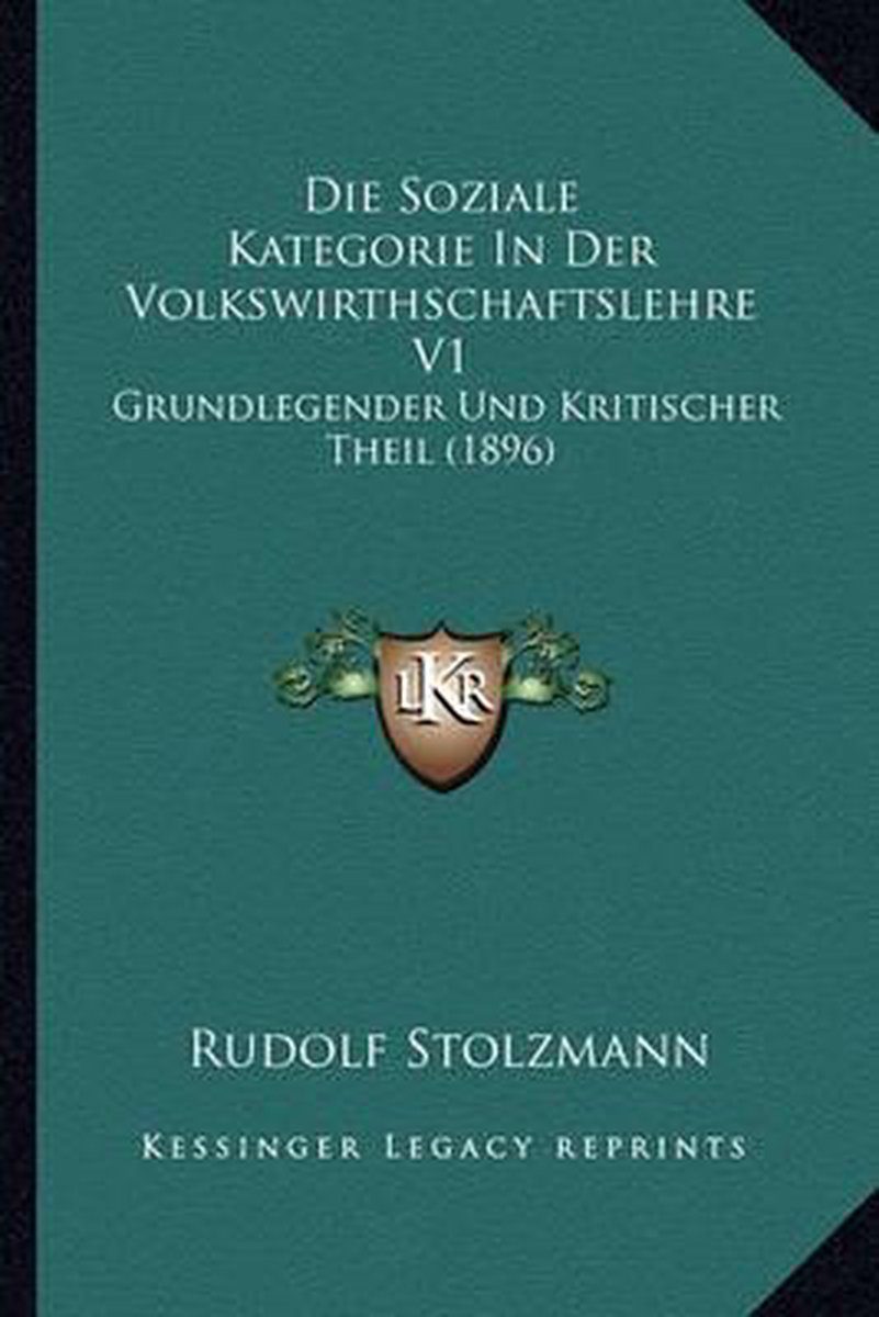 Die Soziale Kategorie In Der Volkswirthschaftslehre V1