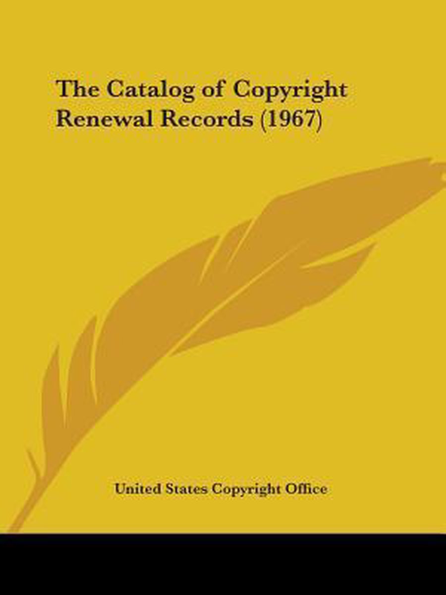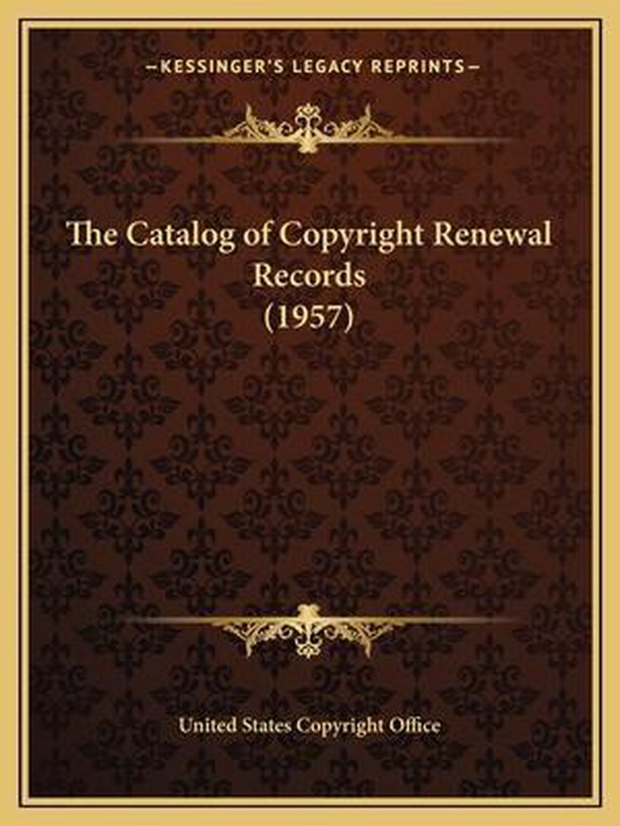 De meest gevonden boeken zijn The Catalog Of Copyright Renewal Records (1969), The Catalog Of Copyright Renewal Records (1970), The Catalog Of Copyright Renewal Records (1975), The Catalog Of Copyright Renewal Records (1952) en The Catalog Of Copyright Renewal Records (1963).