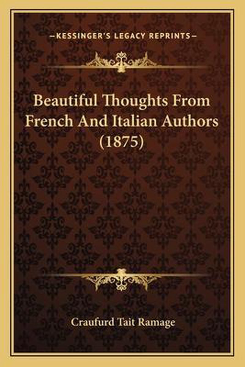 De meest gevonden boeken zijn Beautiful Thoughts From German And Spanish Authors, The Nooks And By-ways Of Italy, Beautiful Thoughts From Latin Authors, Beautiful Thoughts From Greek Authors, With Engl. Transl. And Lives Of The Authors, By C.T. Ramage en Drumlanrig Castle And The Douglases.