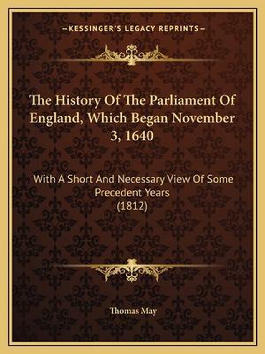 De meest gevonden boeken zijn The History Of The Parliament Of England, Which Began Nov. The Third, 1640. With A Short View Of Some Precedent Years., The Heire. A Comedie [in Five Acts, In Verse And Prose. Second Edition]. Written By T. M(ay). en The History Of The Parliament Of England, Which Began Novembthe History Of The Parliament Of England, Which Began November 3, 1640 Er 3, 1640.