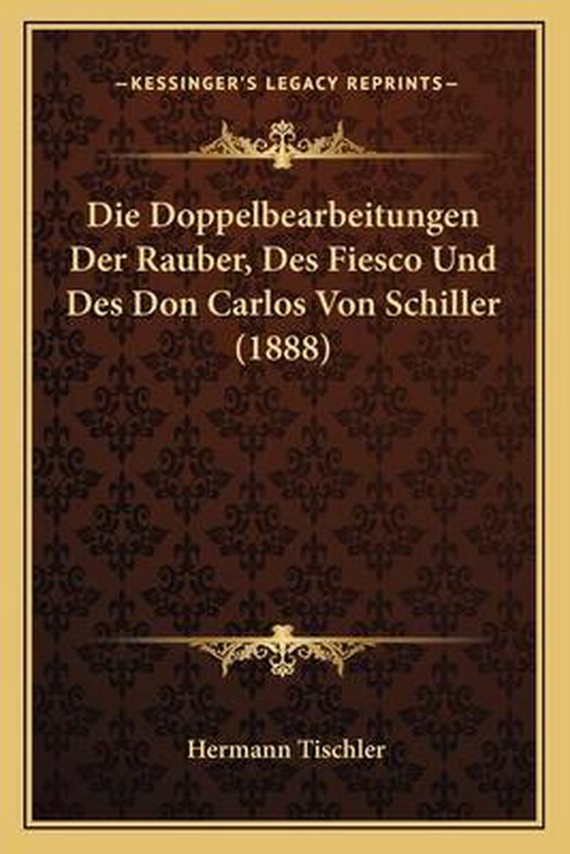 De meest gevonden boeken zijn Die Doppelbearbeitungen Der Rauber, Des Fiesco Und Des Don Carlos Von Schiller (1888) en Die Doppelbearbeitungen Der R Uber, Des Fiesco Und Des Don Carlos Von Schiller....