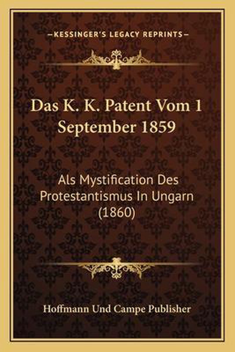 De meest gevonden boeken zijn Briefe Aus Wien, Von Einem Eingebornen V1 (1844), Das K. K. Patent Vom 1 September 1859 en Das Konkordat Und Die K. K. Germanisirung In Ungarn (1860).