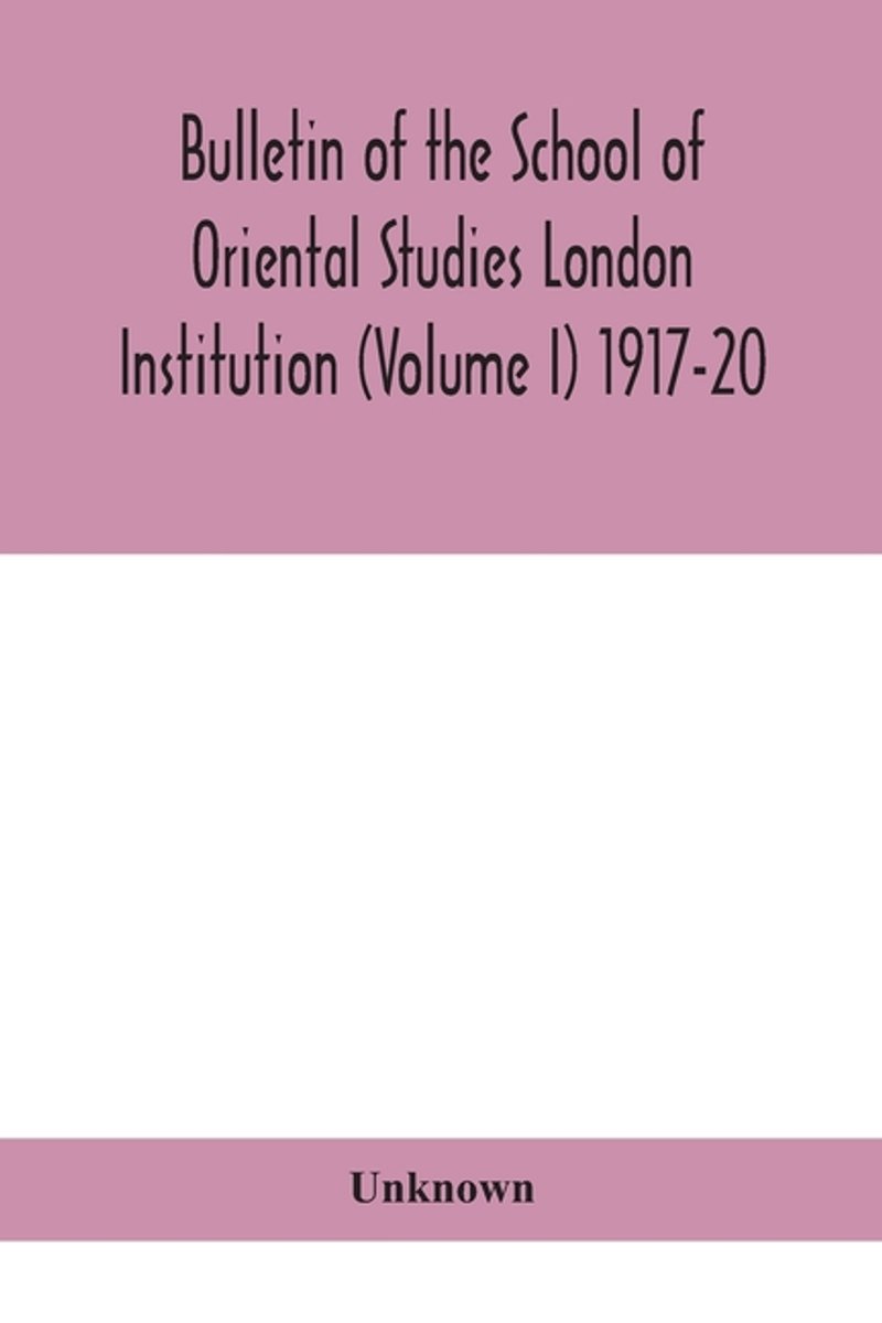 Bulletin Of The School Of Oriental Studies London Institution (volume I) 1917-20