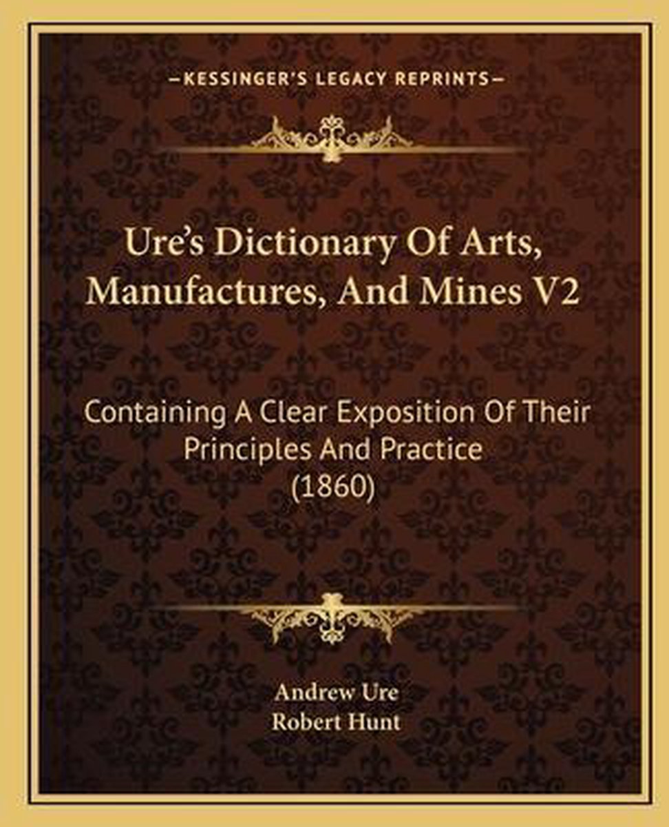 De meest gevonden boeken zijn A Dictionary Of Arts, Manufactures And Mines, The Philosophy Of Manufactures, A New System Of Geology, A Dictionary Of Chemistry en Ure's Dictionary Of Arts, Manufactures, And Mines.