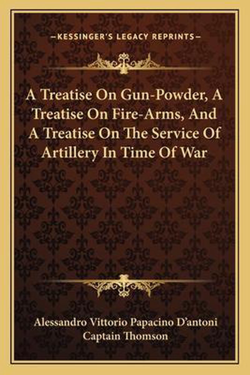 Het boek A Treatise On Gun-powder; A Treatise On Fire-arms; And A Treatise On The Service Of Artillery In Time Of War van de auteur Alessandro Vittorio Papacino Dantoni is 3 maal gevonden, 3 maal nieuw en 0 maal tweedehands. "A Treatise On Gun-powder; A Treatise On Fire-arms; And A Treatise On The Service Of Artillery In Time Of War" is nieuw te koop vanaf € 30,99 bij Bol.com.