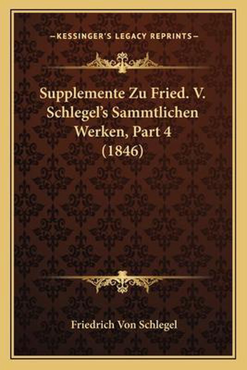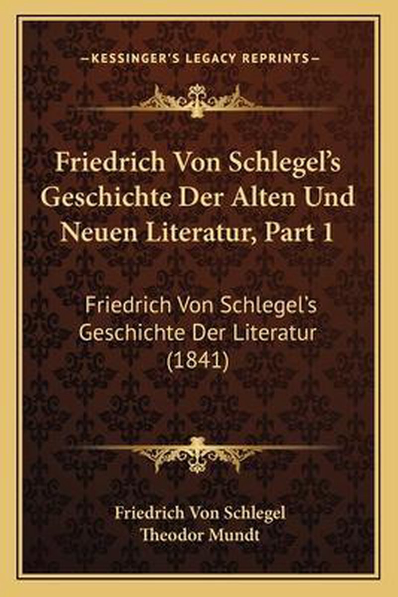 De meest gevonden boeken zijn The Philosophy Of History, The Aesthetic And Miscellaneous Works Of Friedrich Von Schlegel, Lectures On The History Of Literature Ancient And Modern, The Aesthetic And Miscellaneous Works Of Frederick Von Schlegel en The Philosophy Of Life And Philosophy Of Language.