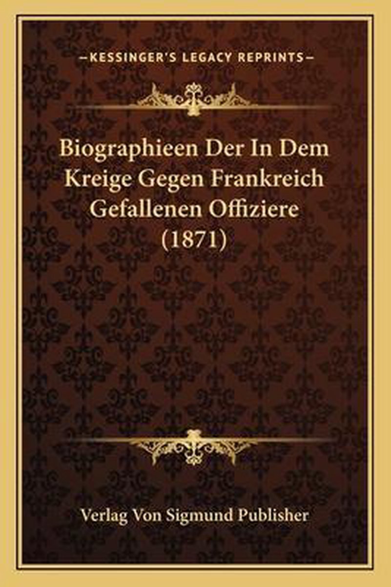 Het enige gevonden boek is Biographieen Der In Dem Kreige Gegen Frankreich Gefallenen Offiziere (1871).