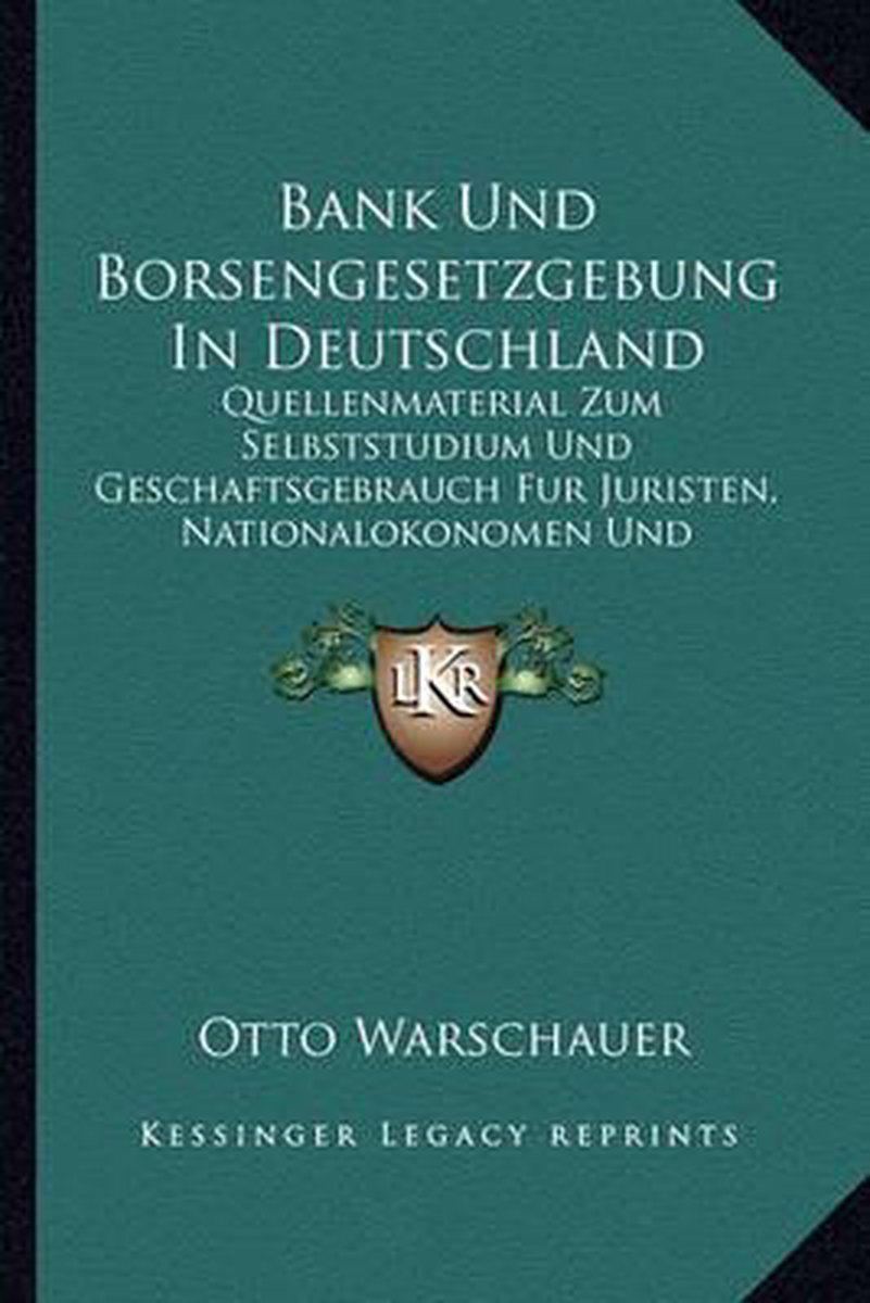 Het enige gevonden boek is Bank Und Borsengesetzgebung In Deutschland.