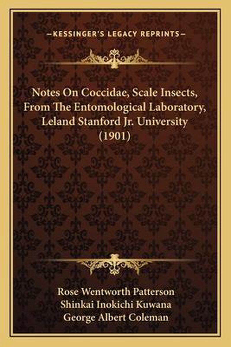 Het enige gevonden boek is Notes On Coccidae, Scale Insects, From The Entomological Laboratory, Leland Stanford Jr. University (1901).