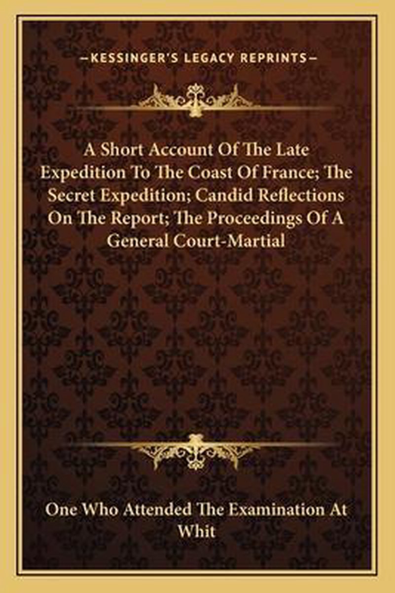 Het enige gevonden boek is A Short Account Of The Late Expedition To The Coast Of France; The Secret Expedition; Candid Reflections On The Report; The Proceedings Of A General Court-martial.