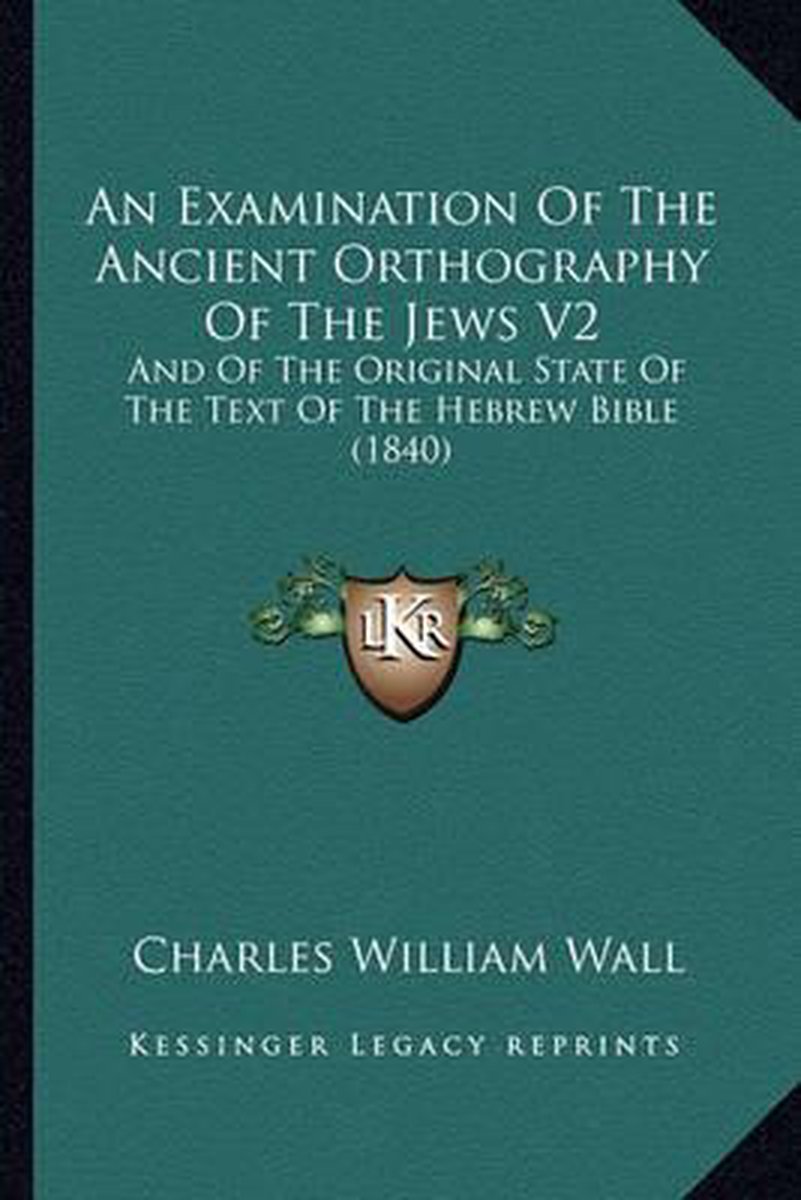 De meest gevonden boeken zijn An Examination Of The Ancient Orthography Of The Jews, And Of The Original State Of The Text Of The, Proofs Of The Interpolation Of The Vowel-letters In The Text Of The Hebrew Bible, Proofs Of The Interpolation Of The Vowel-letters In The Text Of The Hebrew Bible And Grounds Thence Derived For A Revision Of Its Authorized English Version, Volume 20; Volume 925, An Essay On The Nature, Age, And Origin Of The Sanskrit Writing And Language (1838) en An Examination Of The Ancient Orthography Of The Jews.