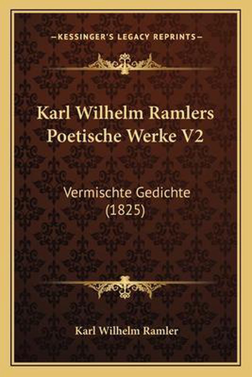 De meest gevonden boeken zijn Die Auferstehung Und Himmelfahrt Jesu, Karl Wilhelm Ramlers Lyrische Gedichte, Anthologie Aus Karl Wilhelm Ramlers Gedichten, Karl Wilhelm Ramlers Poetische Werke V2 en Lyrische Gedichte.