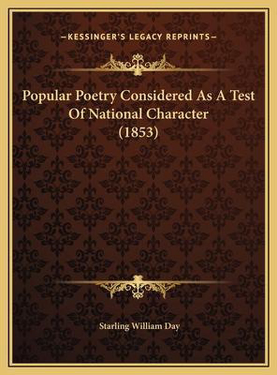 De meest gevonden boeken zijn Popular Poetry Considered As A Test Of National Character (1853) en Popular Poetry Considered As A Test Of National Character.