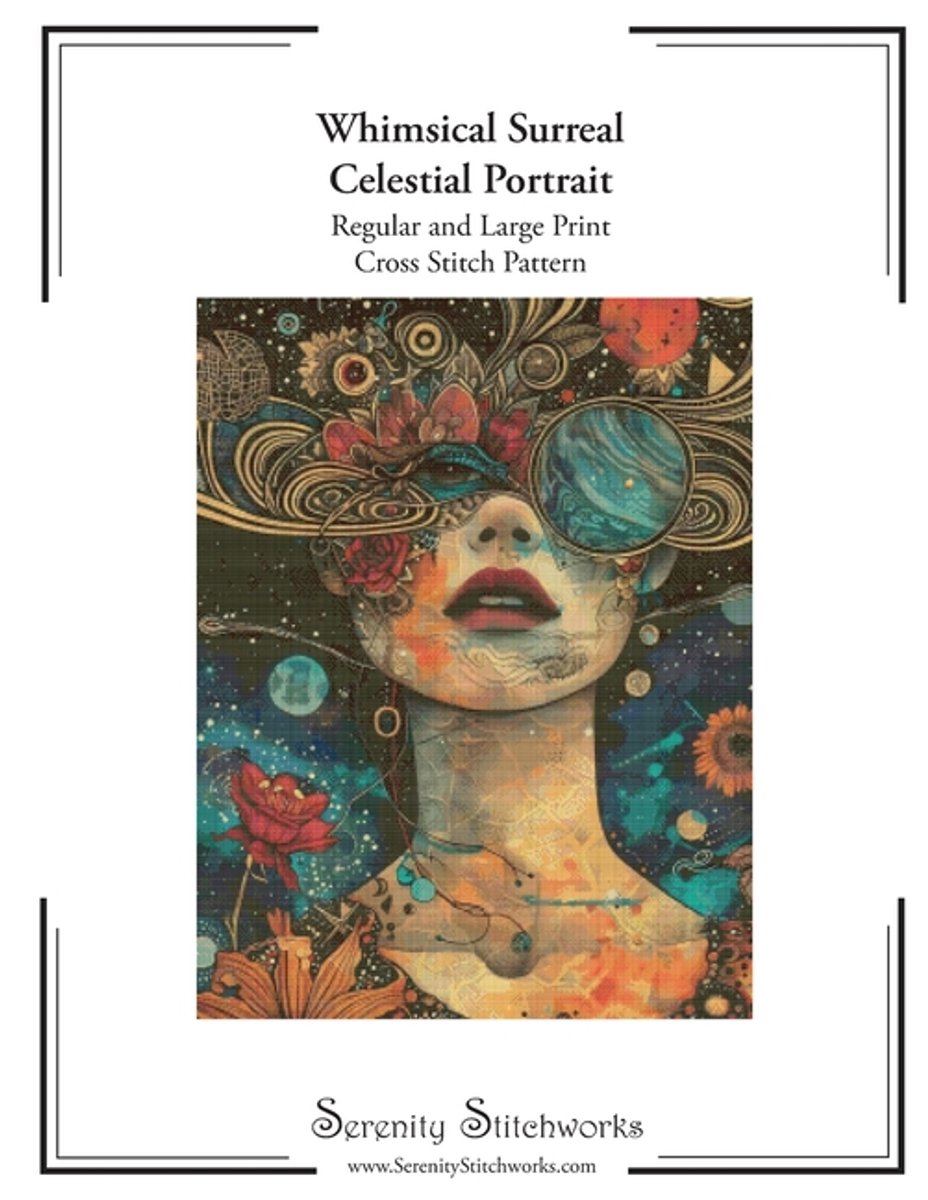 Whimsical Surreal Celestial Portrait Cross Stitch Pattern