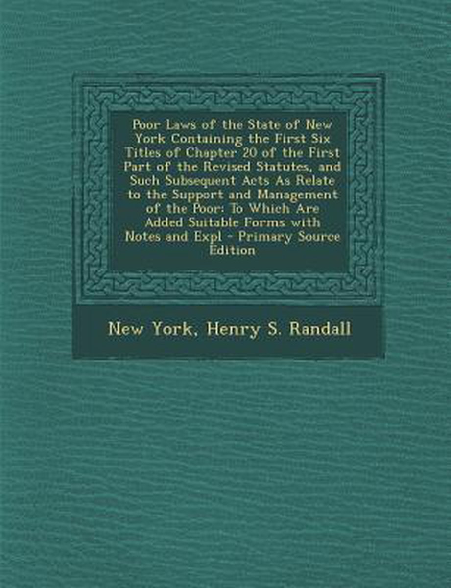 Poor Laws Of The State Of New York Containing The First Six Titles Of Chapter 20 Of The First Part Of The Revised Statutes, And Such Subsequent Acts As Relate To The Support And Management Of The Poor