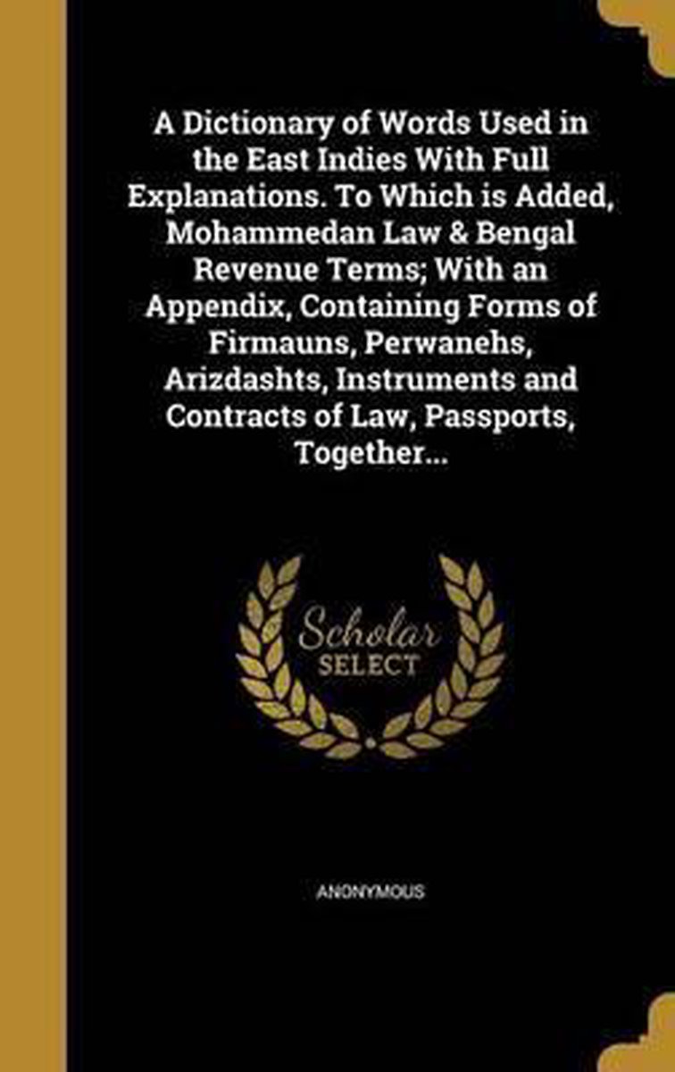 A Dictionary Of Words Used In The East Indies With Full Explanations. To Which Is Added, Mohammedan Law & Bengal Revenue Terms; With An Appendix, Containing Forms Of Firmauns, Perwanehs, Arizdashts, Instruments And Contracts Of Law, Passports, Together...