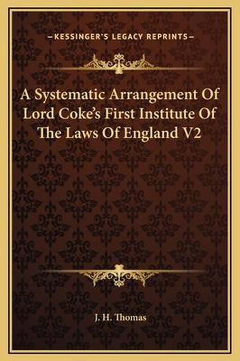 A Systematic Arrangement Of Lord Coke's First Institute Of The Laws Of England V2