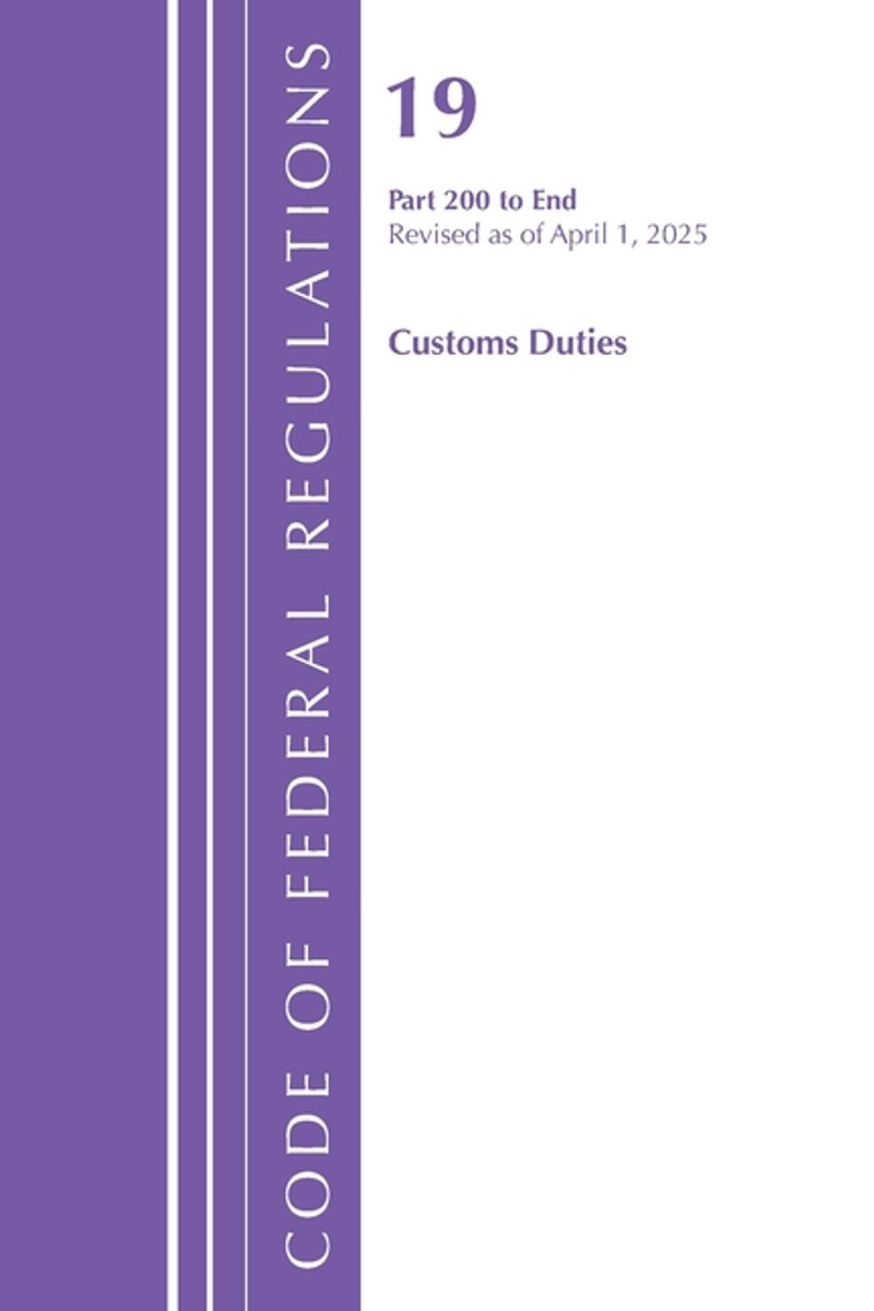 Code Of Federal Regulations, Title 19 Customs Duties- Code Of Federal Regulations, Title 19 Customs Duties 200 - End, Revised As Of April 1, 2025
