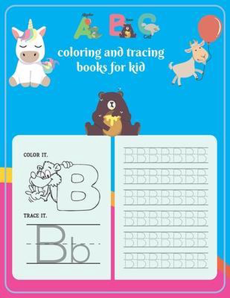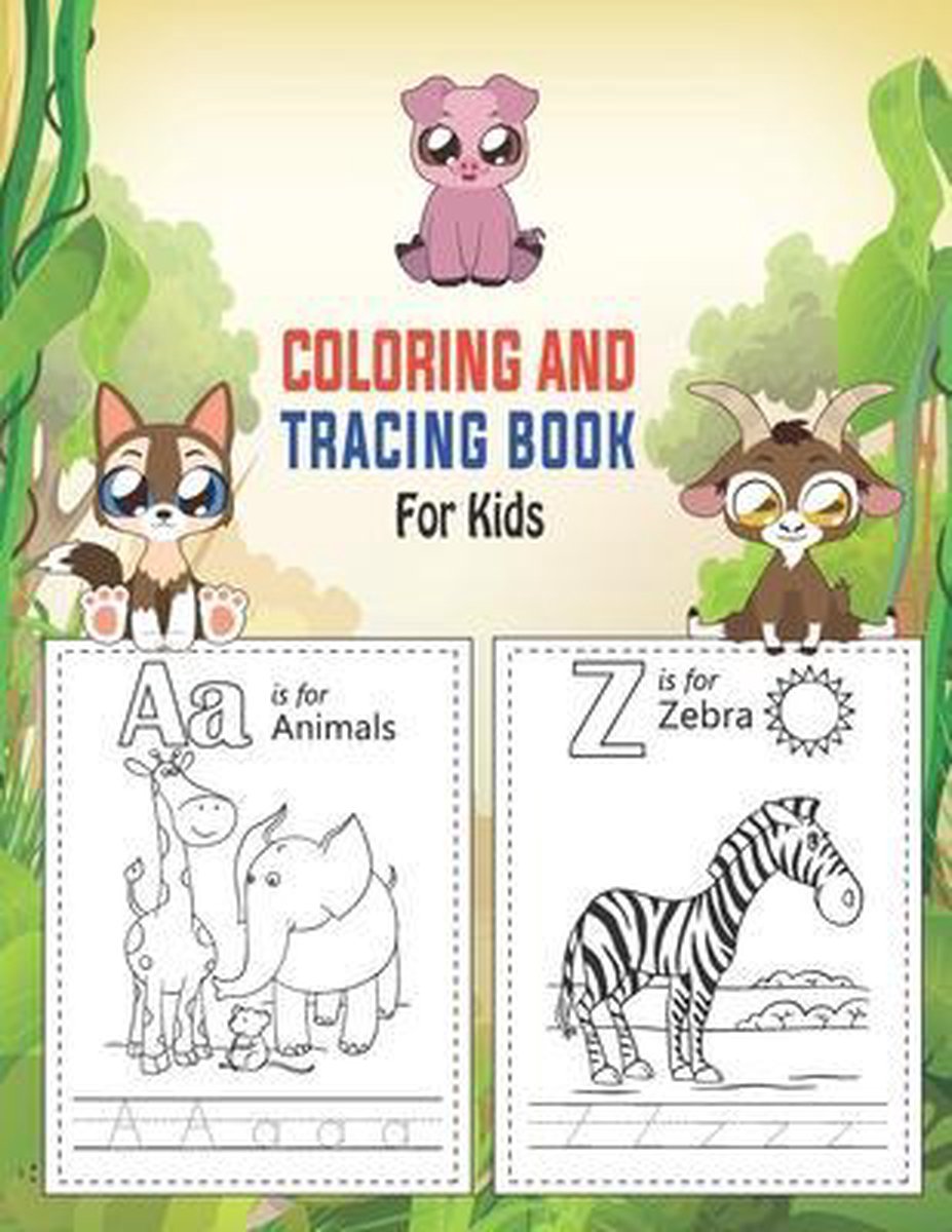 Coloring And Tracing Book For Kids: Letter Tracing - Coloring Cute Animals For Kids, Practice Handwriting And Color Hand Drawn Illustrations - Animal