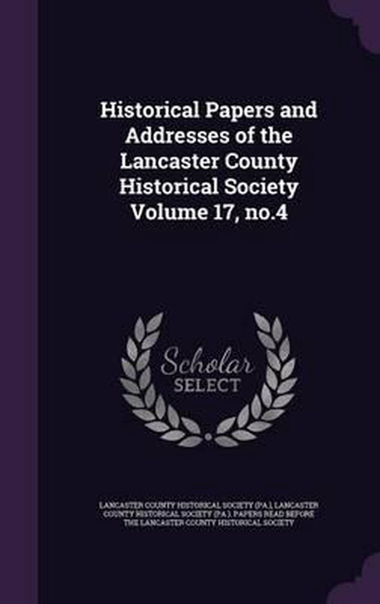 Historical Papers And Addresses Of The Lancaster County Historical Society Volume 17, No.4