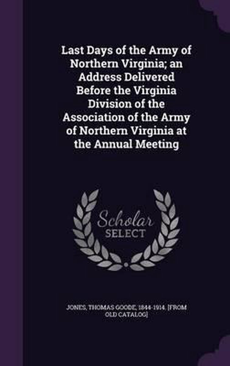 Last Days Of The Army Of Northern Virginia; An Address Delivered Before The Virginia Division Of The Association Of The Army Of Northern Virginia At The Annual Meeting