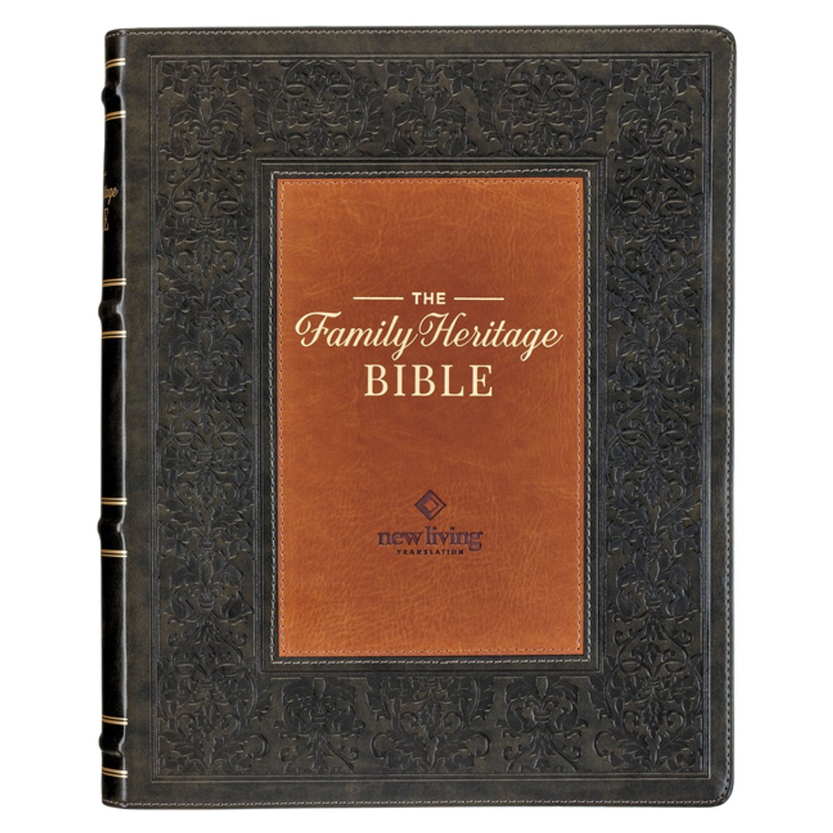 Nlt Family Heritage Bible, Large Print Family Devotional Bible For Study, New Living Translation Holy Bible Faux Leather Flexible Cover, Additional Interactive Content, Dark Olive/brown