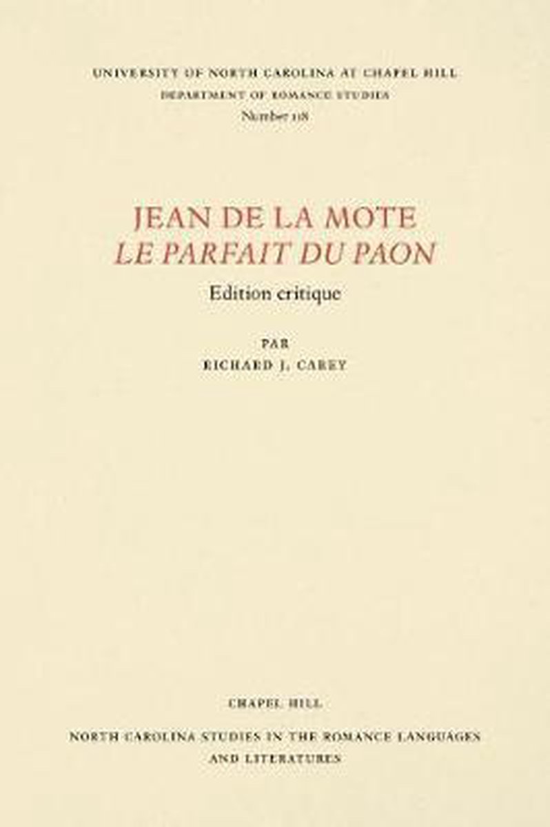 North Carolina Studies In The Romance Languages And Literatures- Jean De La Mote Le Parfait Du Paon