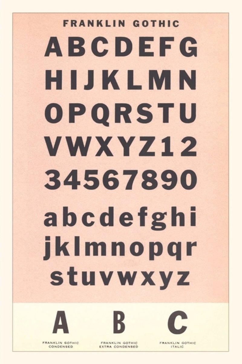 Pocket Sized - Found Image Press Journals- Vintage Journal Font Sample Chart, Franklin Gothic