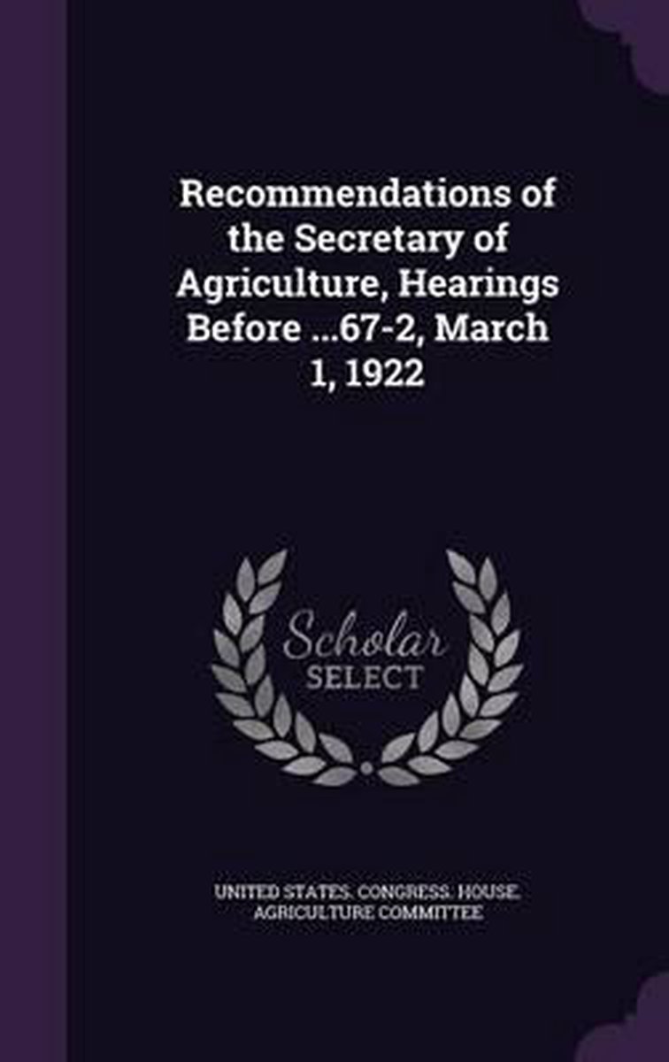 Recommendations Of The Secretary Of Agriculture, Hearings Before ...67-2, March 1, 1922