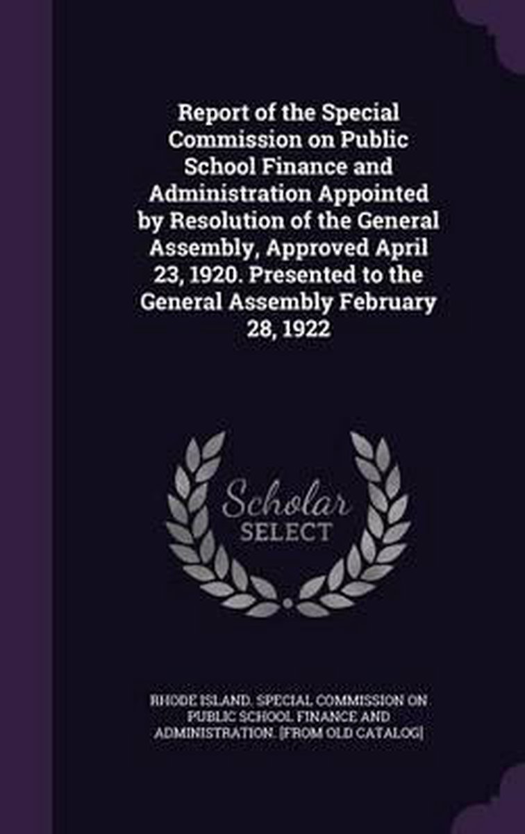 Report Of The Special Commission On Public School Finance And Administration Appointed By Resolution Of The General Assembly, Approved April 23, 1920. Presented To The General Assembly February 28, 1922