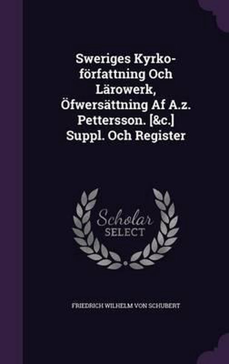 Sweriges Kyrko-forfattning Och Larowerk, Ofwersattning Af A.Z. Pettersson. [&c.] Suppl. Och Register
