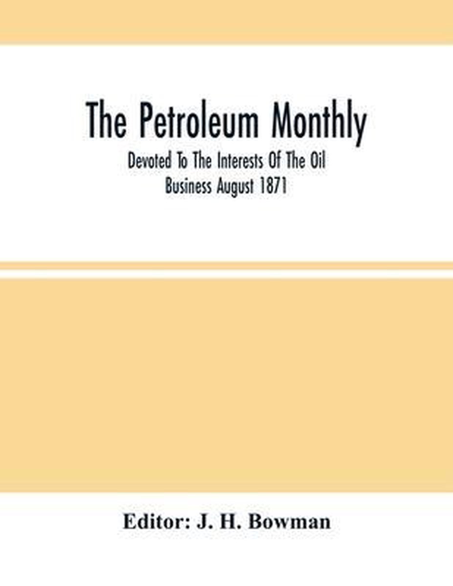 The Petroleum Monthly; Devoted To The Interests Of The Oil Business August 1871