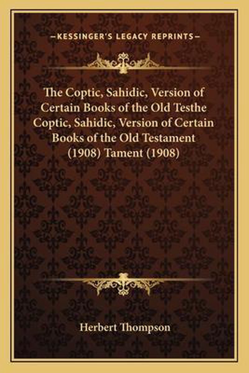 The Coptic, Sahidic, Version Of Certain Books Of The Old Testhe Coptic, Sahidic, Version Of Certain Books Of The Old Testament (1908) Tament (1908)