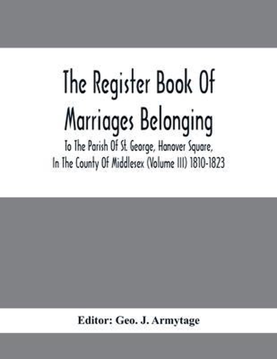 The Register Book Of Marriages Belonging To The Parish Of St. George, Hanover Square, In The County Of Middlesex (volume Iii) 1810-1823