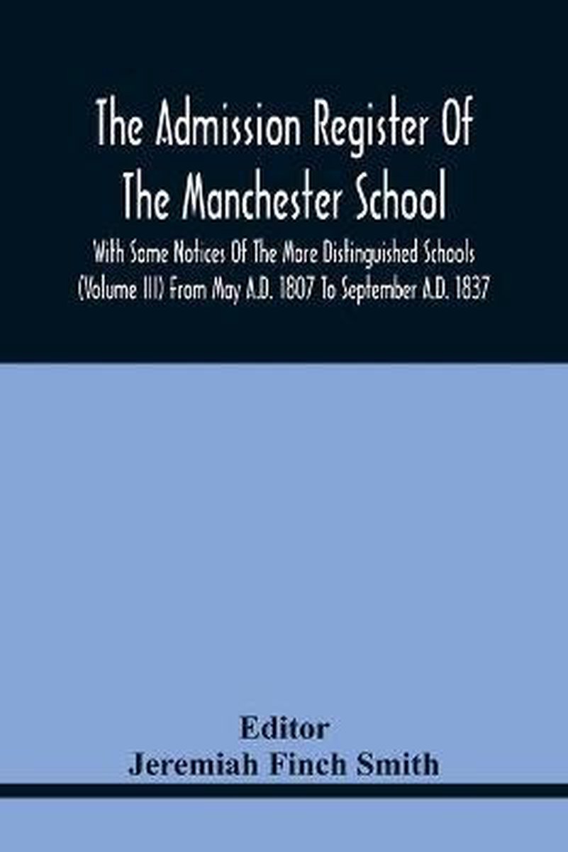 The Admission Register Of The Manchester School With Some Notices Of The More Distinguished Schools (volume Iii) From May A.D. 1807 To September A.D. 1837